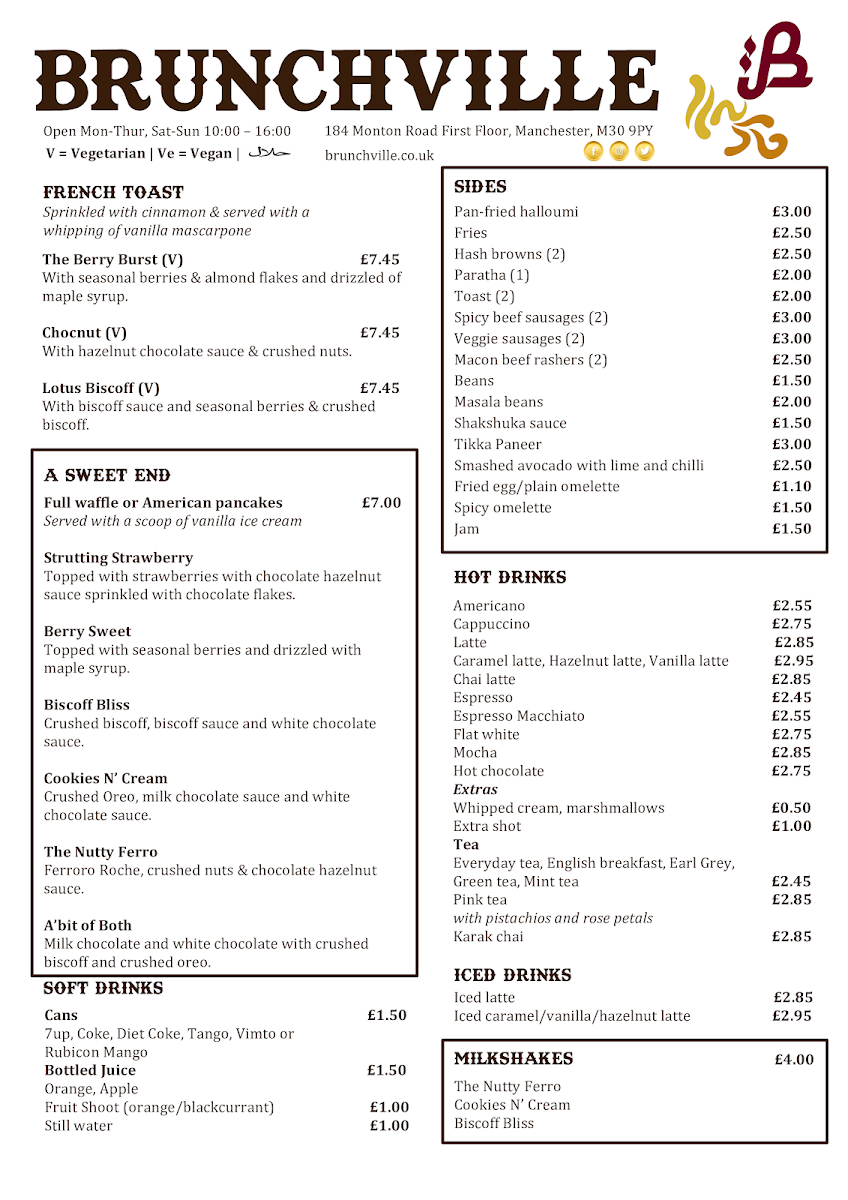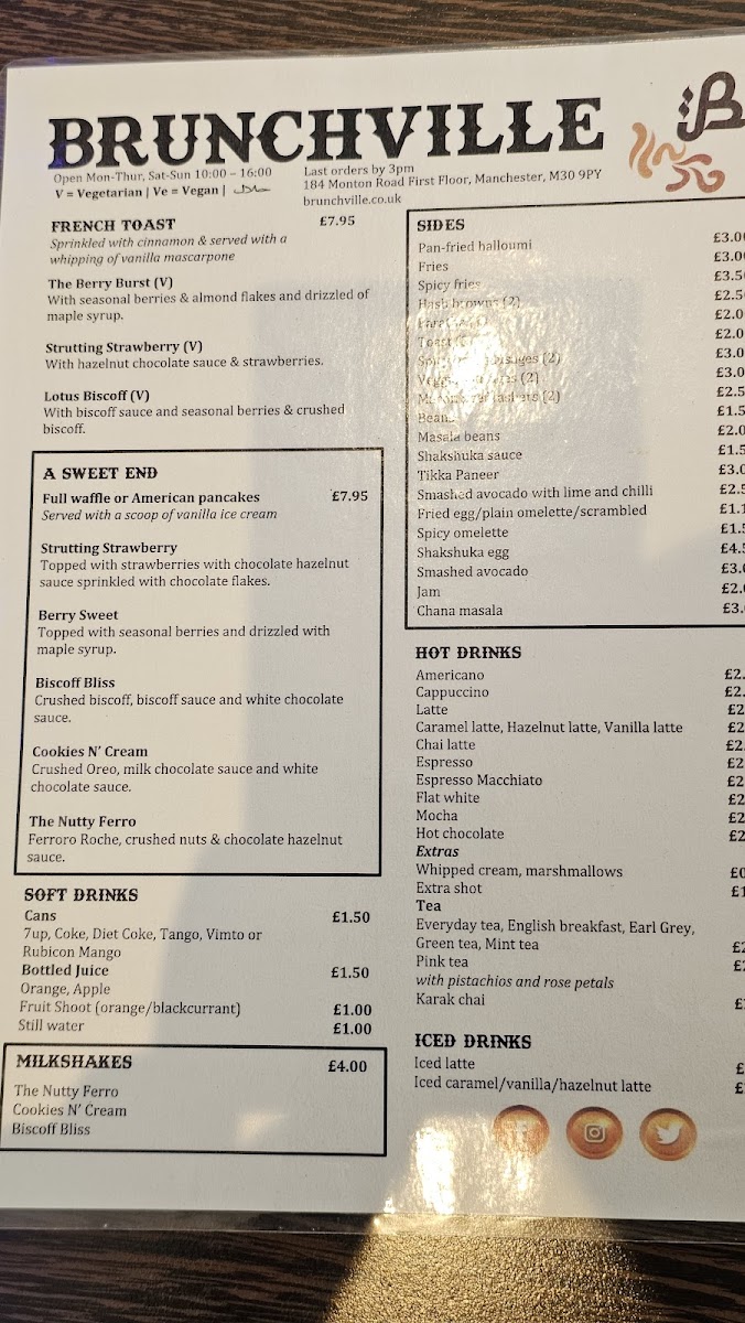 Introducing Brunchville, a delightful café nestled at 184 Monton Rd, Eccles, Manchester. This family-run gem creates a warm and inviting atmosphere perfect for your weekend brunch. The menu is thoughtfully curated, featuring enticing options like the Benglish breakfast, a unique take on the classic English dish, and the luscious Lotus Biscoff French toast that has garnered rave reviews.